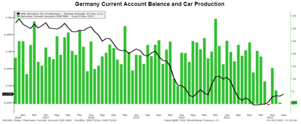 这三种通缩的助因已经停止或逆转。 首先,全球储蓄过剩的现象正在迅速减少。由于生产者价格飙升,日本1月份经常账户出现了50年来首次月度赤字。 德国在5月也是如此。 全球芯片短缺、天然气价格飙升和中国的封锁使得德国最重要的出口产品遭受了致命的三重打击:德国的汽车产量自疫情爆发前的峰值已经减半。