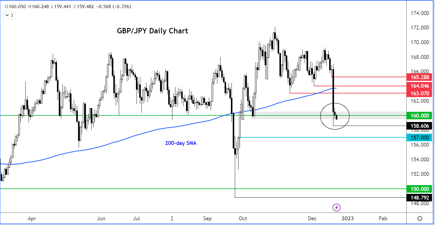 英镑/日元今日来不断下跌,偶有小幅反弹。货币对可在158.60点附近找到支撑点,但如果上升,很可能会在160整数位遭遇关键阻力。截至撰稿时,货币对仍然向下波动,很可能跌至本周低点158.60。如果跌穿这一位置,可能在157.00附近区域找到下一支撑位。不过在日本央行政策出人意料的政策影响下,英镑/日元货币对会继续下跌,值得密切关注。