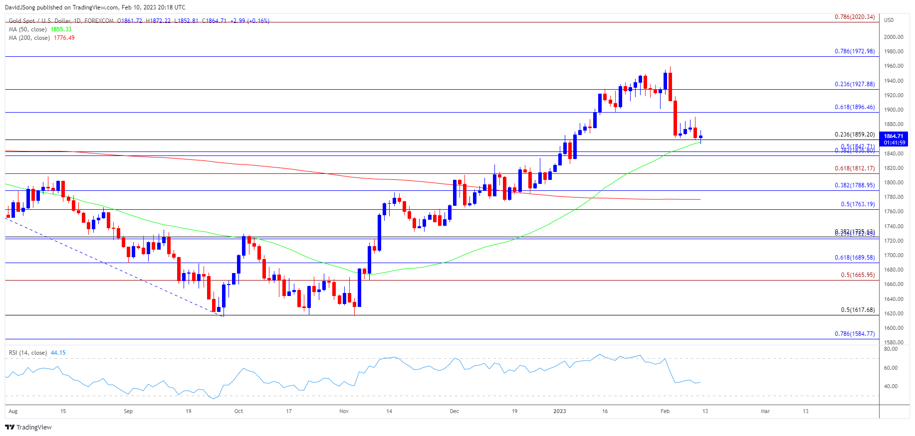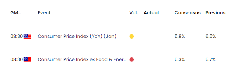 据推测,预计1月整体和核心CPI都将收窄,而随着FOMC接近其加息周期的尾声,物价压力缓解的证据可能会增加黄金的吸引力。