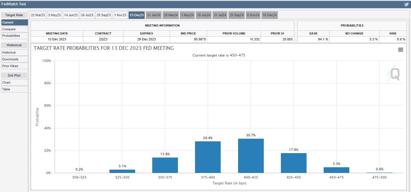 芝商所Fedwatch FOMC 1213日议息会议,联邦利率目标可能性