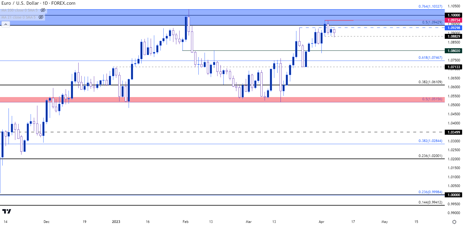 NFP于周五发布时,欧元/美元便开始走弱,直到再次触及支撑位1.0883才止跌。从日线图来看,各方面条件还不至于令多头完全投降,因为本周仍然延续了更高的高点和低点的看涨走势。但实际情况发生在1.1000关口附近,此处还有一些其他阻力位,这使得该货币对仍有可能出现波动。