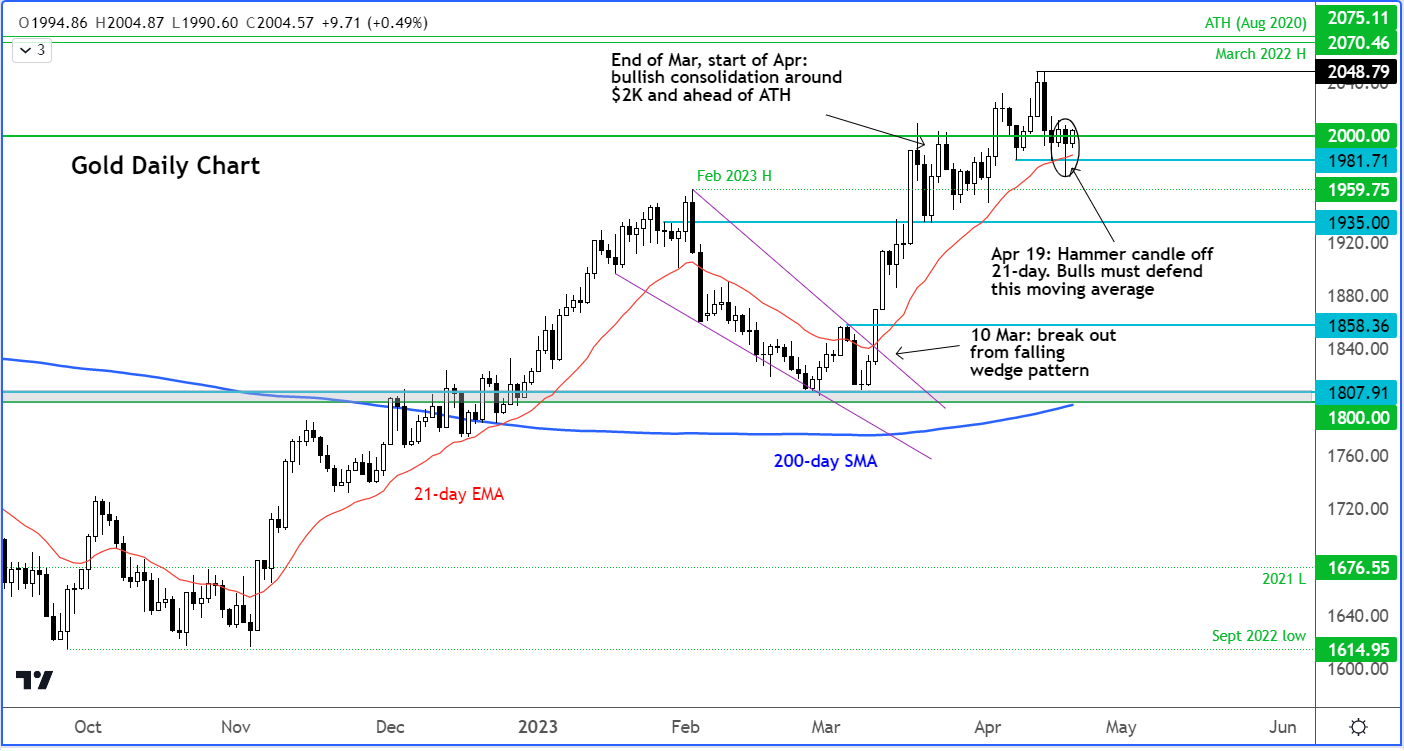就前者而言,这里在技术上很有意义,不是吗?我的意思是,如果你看一下黄金的历史图表,2000美元附近的区域在过去三年左右一直是顽固的阻力位。每当黄金试图向上脱离该区域时,都会遭到无情的抗拒。显然,一些黄金投机者不愿冒险,并乐于从过去几个月左右积累的多头交易中了结可观的利润。当然,这并不意味着黄金不能进一步上涨。它当然可以,我相信它最终会创下历史新高。只是过程,你明白我的意思吧。