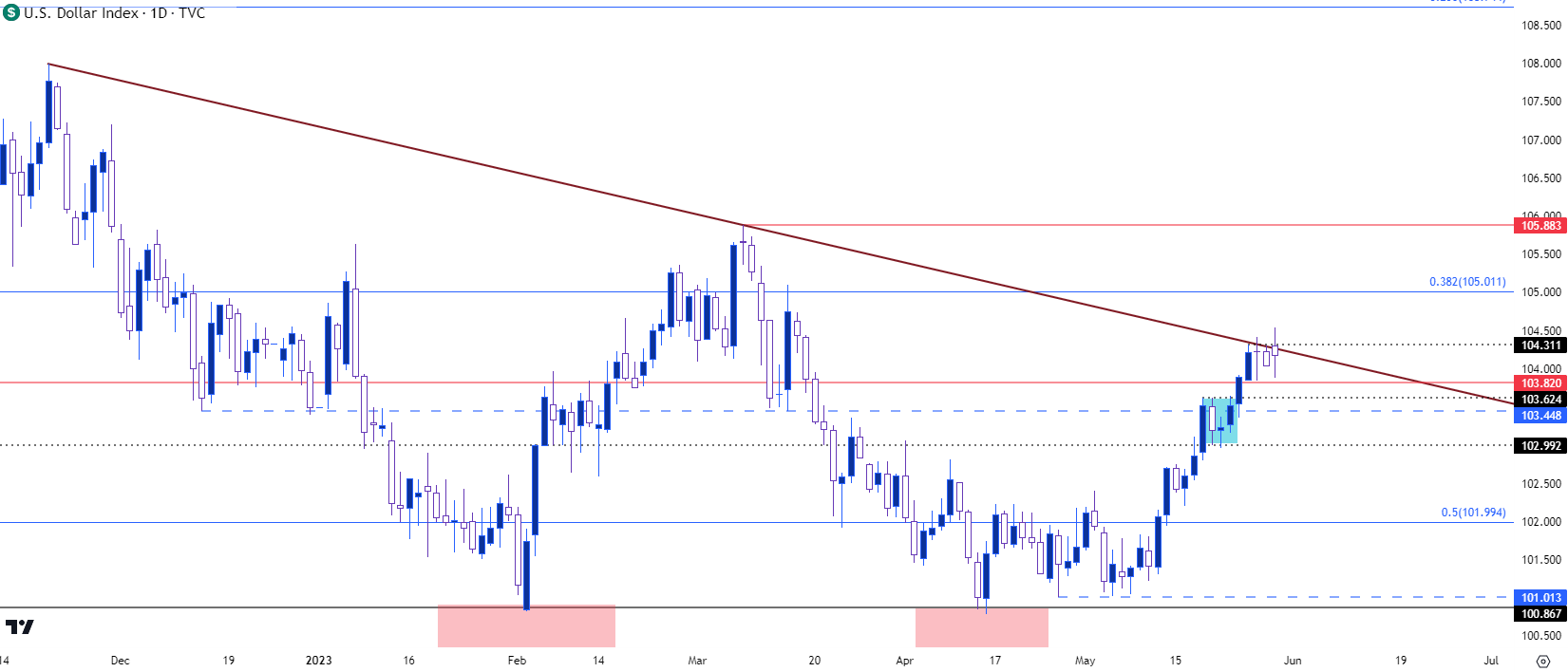 也许在某种程度上,这种情况已经发生,但到目前为止,多头的支撑位高于先前的阻力位,这为涨势延续打开了空间。至于DXY的支撑位,我将关注关键点位103.82,但它太近了,因此也算上了附近103.62103.45作为几个额外的点位。103.00也很关键,因为这是上周DXY在日线图上建立晨星形态的支撑位。