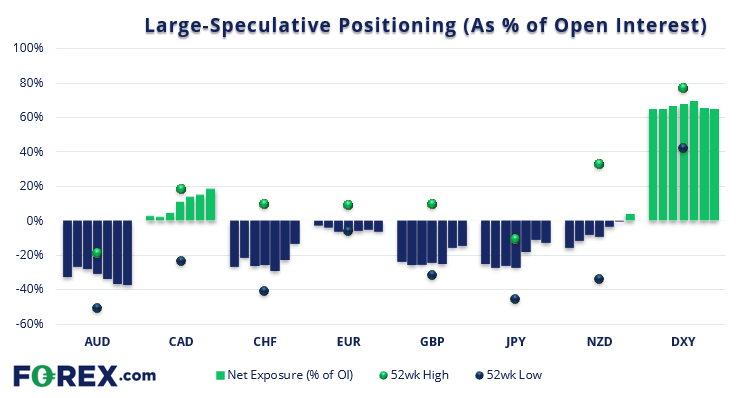 交易员增持加元期货合约净多头,至2022年7月以来之最。最近几周多头持仓增加而空头持仓减少,但价格整体上因为美元走强而并没有上扬。接下来要么需要价格反弹证实净多头增加的合理性,要么需要多头了结部分头寸,承认看错了市场。