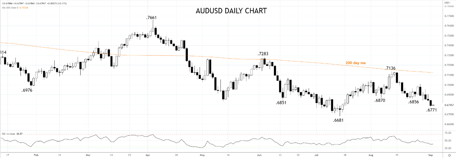 如果突破并收于0.6850支撑位下方,价格可能回踩7月低点0.6681。要消除下行风险,需要收复0.6900。