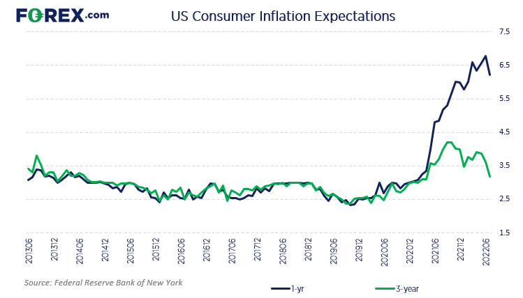 纽约联储调查显示,1年期通胀预期跌至5个月低点,而3年期通胀预期降至15个月低点。两者仍各自高于我们期待的6.2%3.2%,但可能是一次破冰,标志着潜在转折点。而且,该调查显示,未来一年食品与天然气价格预计出现较大幅度的下降。希望这是真的。