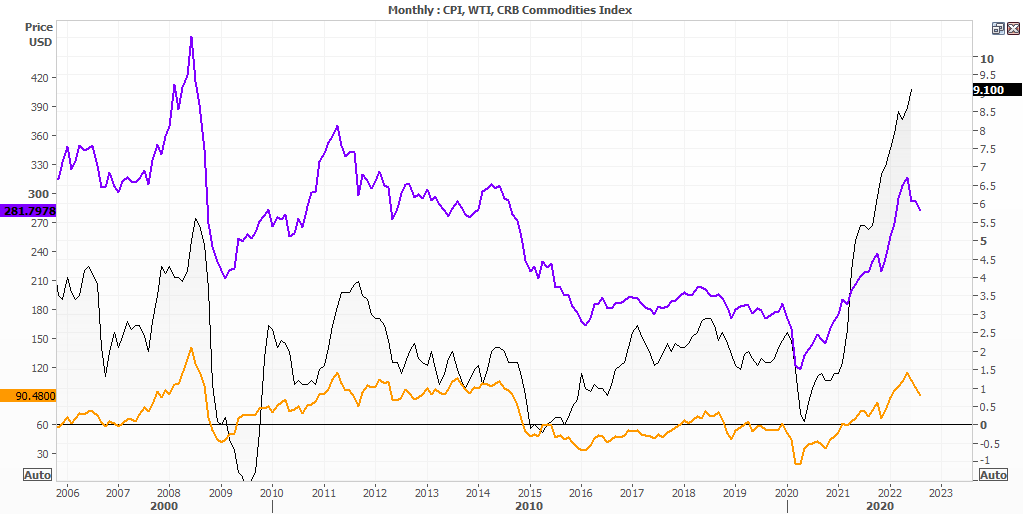 我们早在6月份就深入分析了通胀压力。当时我们先看到美国CPI8.5%回落至8.2%,呈现通胀见顶的早期信号。我们在报告中指出,不能只看一个月的数据就确认通胀触顶。事实证明我们是正确的,美国通胀率现在达到9.1%。另外,在大宗商品价格继续上涨的同时,某些领域的通胀压力也在减弱。今天我们将再度观察之前观察过的各项指标,判断通胀是否距离飘忽的顶部更近了一步。